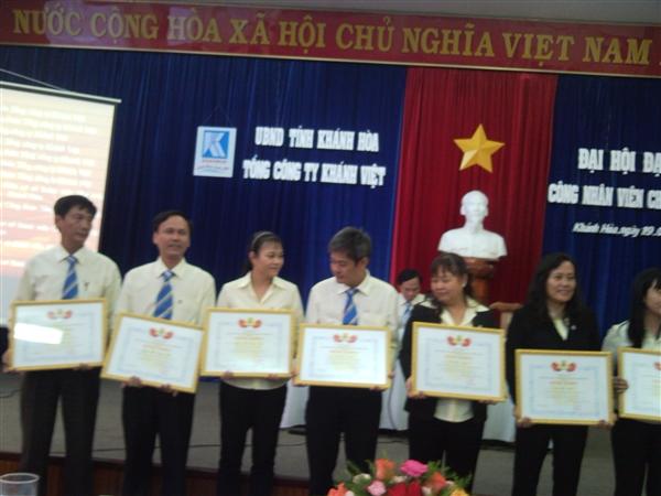 | Sáng ngày 19/05/2011, tại Nhà văn hóa tỉnh Khánh Hòa, trong không khí hân hoan mừng ngày sinh nhật Bác, Tổng Công ty (TCT) Khánh Việt đã tổ chức thành công đại hội công nhân viên chức năm 2011. Đến dự với đại hội có ông Nguyễn Hòa – Tỉnh ủy viên – Phó chủ tịch LĐLĐ tỉnh Khánh Hòa, ông Trần Mạnh Dũng – Bí thư Đảng ủy khối Doanh nghiệp, Ban Lãnh đạo TCT cùng 264 cán bộ ưu tú đến từ các đơn vị thành viên TCT. | ||||||||