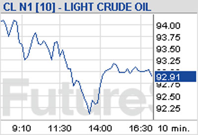 Giá dầu thô giảm mạnh trong phiên giao dịch ngày thứ Sáu, xuống mức thấp nhất của 4 tháng ở dưới 93 USD/thùng, do bi quan về triển vọng tăng trưởng kinh tế và nợ công ở châu Âu. Tính chung cả tuần, dầu có tuần giảm sâu nhất kể từ đầu tháng 5. Hoạt động bán tháo diễn ra khá ồ ạt và dầu đã tách khỏi mối tương quan quen thuộc với đồng USD, cùng nhau lao dốc dù rằng các hàng hóa khác có lợi. Giới phân tích năng lượng bắt đầu bi quan hơn về vấn đề Hy Lạp, hơn cả những gì đang xảy ra trên thị trường tiền tệ, nơi có đồng USD mất gần 1 USD vì khả năng đạt được thỏa thuận về nâng trần nợ ở Mỹ. Đóng cửa phiên 17/6, giá dầu thô ngọt nhẹ giảm 1,94 USD, tương đương 2,04% xuống 93,01 USD/thùng – thấp nhất kể từ ngày 18/2. Sau khi đóng cửa, giá dầu trên bảng điện tử tiếp tục rơi xuống 92,9 USD/thùng. Dầu thô hôm qua rơi xuống dưới mức bình quân 200 ngày lần đầu tiên kể từ tháng 9 năm ngoái, làm tăng sức ép bán stop loss của nhà đầu tư.
