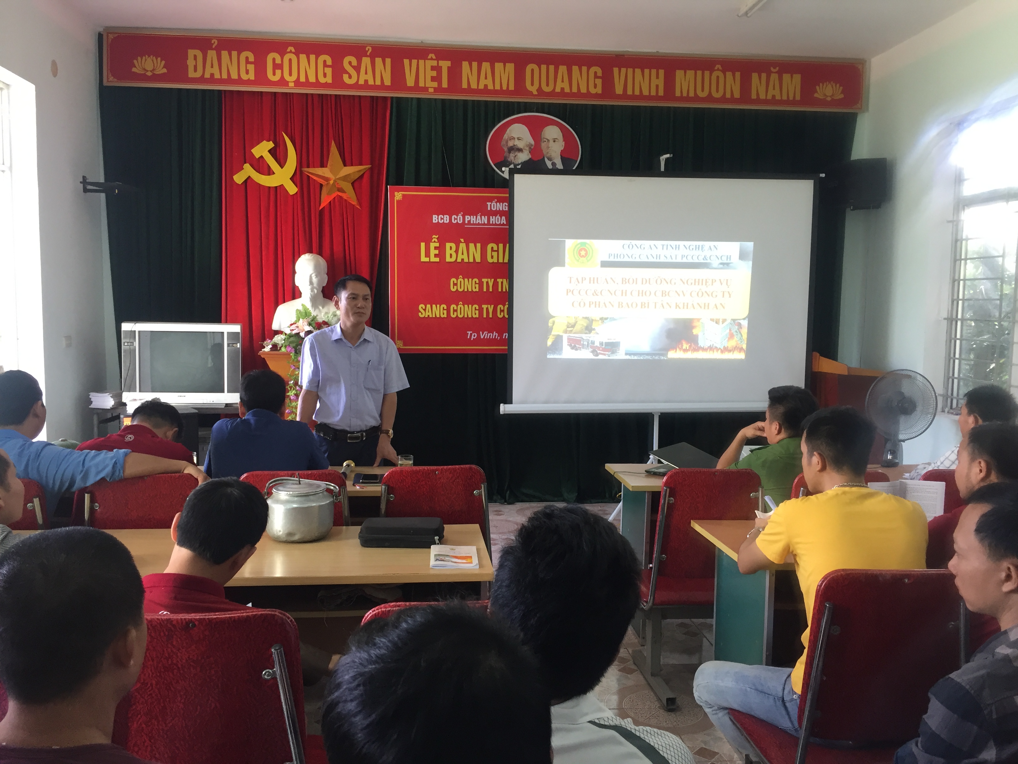 Thực hiện Kế hoạch tập huấn năm 2019 của Ban lãnh đạo Công ty cổ phần Bao bì Tân Khánh An, nhằm trang bị kiến thức PCCC cho cán bộ công nhân viên trong công ty ngày 26/07/2019, Phòng Cảnh sát PCCC tỉnh Nghệ An phối hợp với Công ty cổ phần Bao bì Tân Khánh An tổ chức lớp huấn luyện nghiệp vụ PCCC cho cán bộ, người lao động trong Công ty.