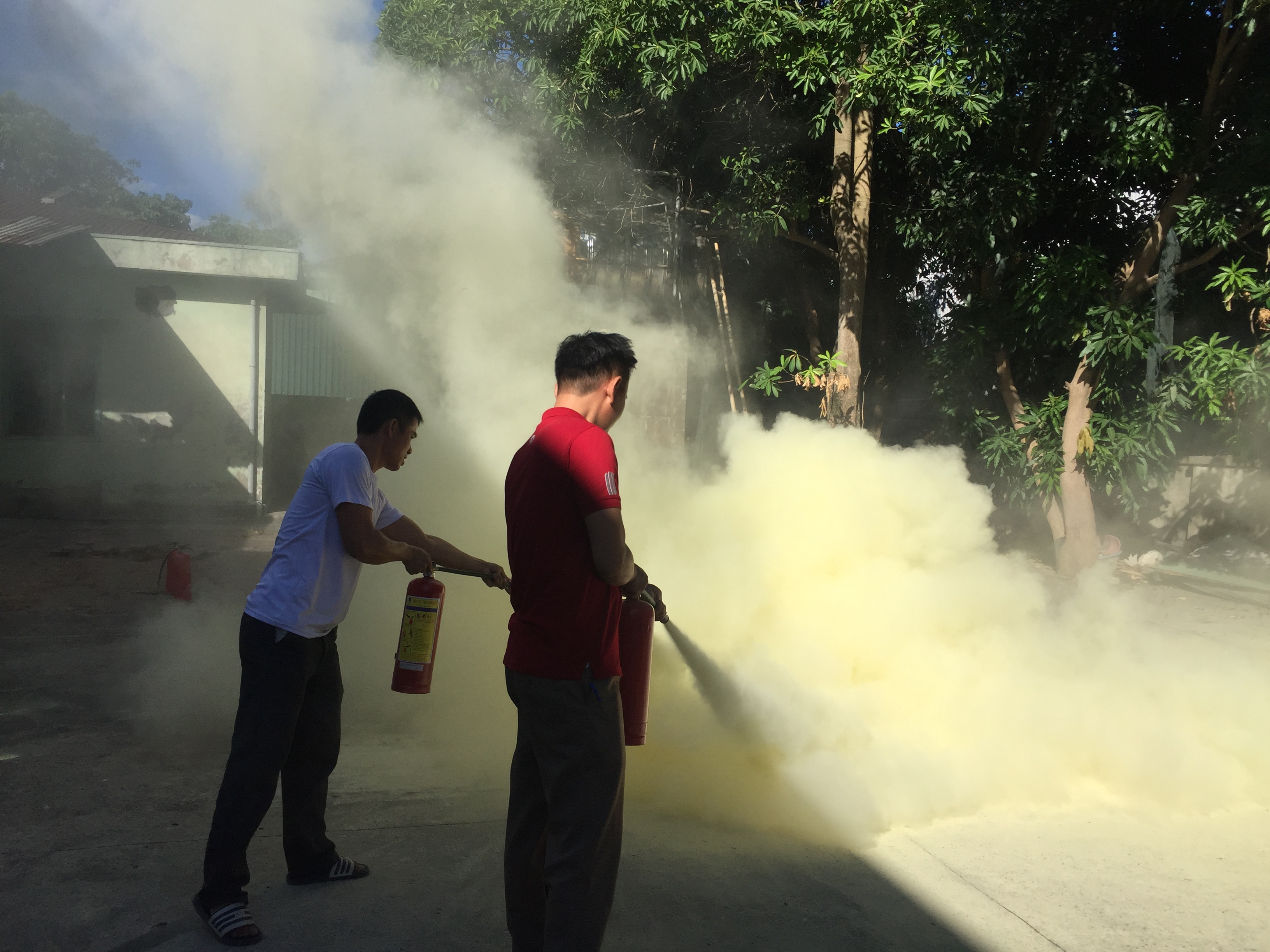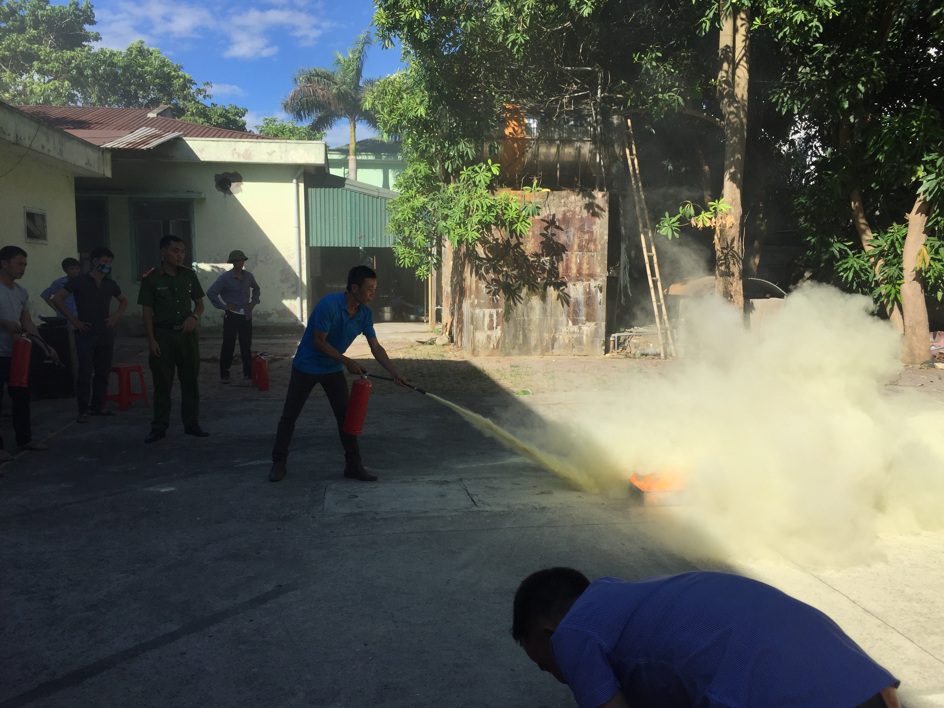 Sau buổi học lý thuyết, dưới sự giúp đỡ của giảng viên và cán bộ Phòng Cảnh sát PCCC Công an tỉnh, các học viên tham dự đã được thực hành cách sử dụng các phương tiện chữa cháy tại chỗ như bình bọt, bình bột, bình khí dập tắt đám cháy trong khay xăng; thực hành xử lý đám cháy giả định sử dụng quả khói…